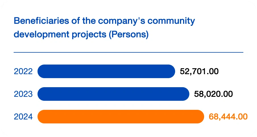 | Beneficiaries of the company's community development projects (Persons) | 52,701.00 | 58,020.00 | 68,444.00 |